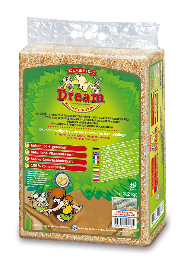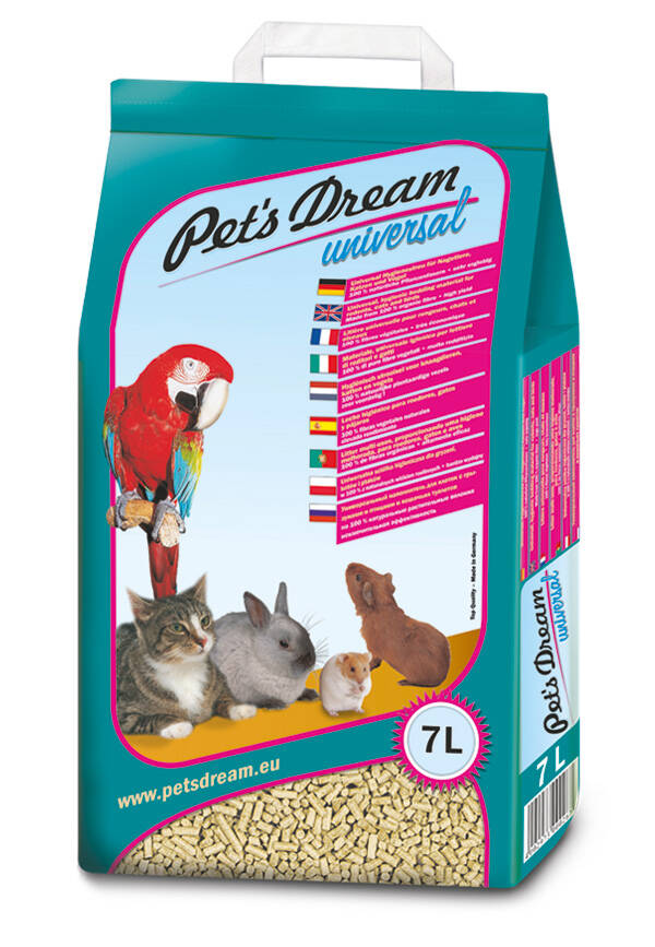 The universal hygiene chaff Pet’s Dream Universal for rodents, cats and birds is absorbent and binds odors without chemical additives. Pet's Dream Universal is an organic natural product made from plant fibers and is 100% biodegradable.