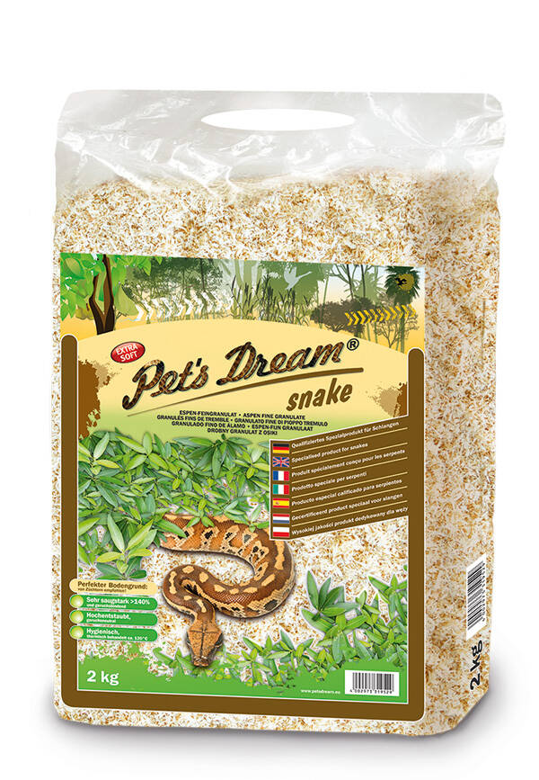 Dust and germ-free special litter made from fine softwood flakes, developed with snake experts. Without harmful essential oils, with a fresh scent. Promotes nesting behavior and is suitable for moist terrariums. The optimized plant fibres ensure perfect moisture management and effectively bind moisture and odours.